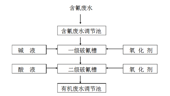氫氰根離子用一般的絮凝沉淀法不能將其直接去除,必須通過(guò)氧化作用,打破其化學(xué)鍵的結(jié)構(gòu),最終使其降解,形成CO2和N2得已去除。